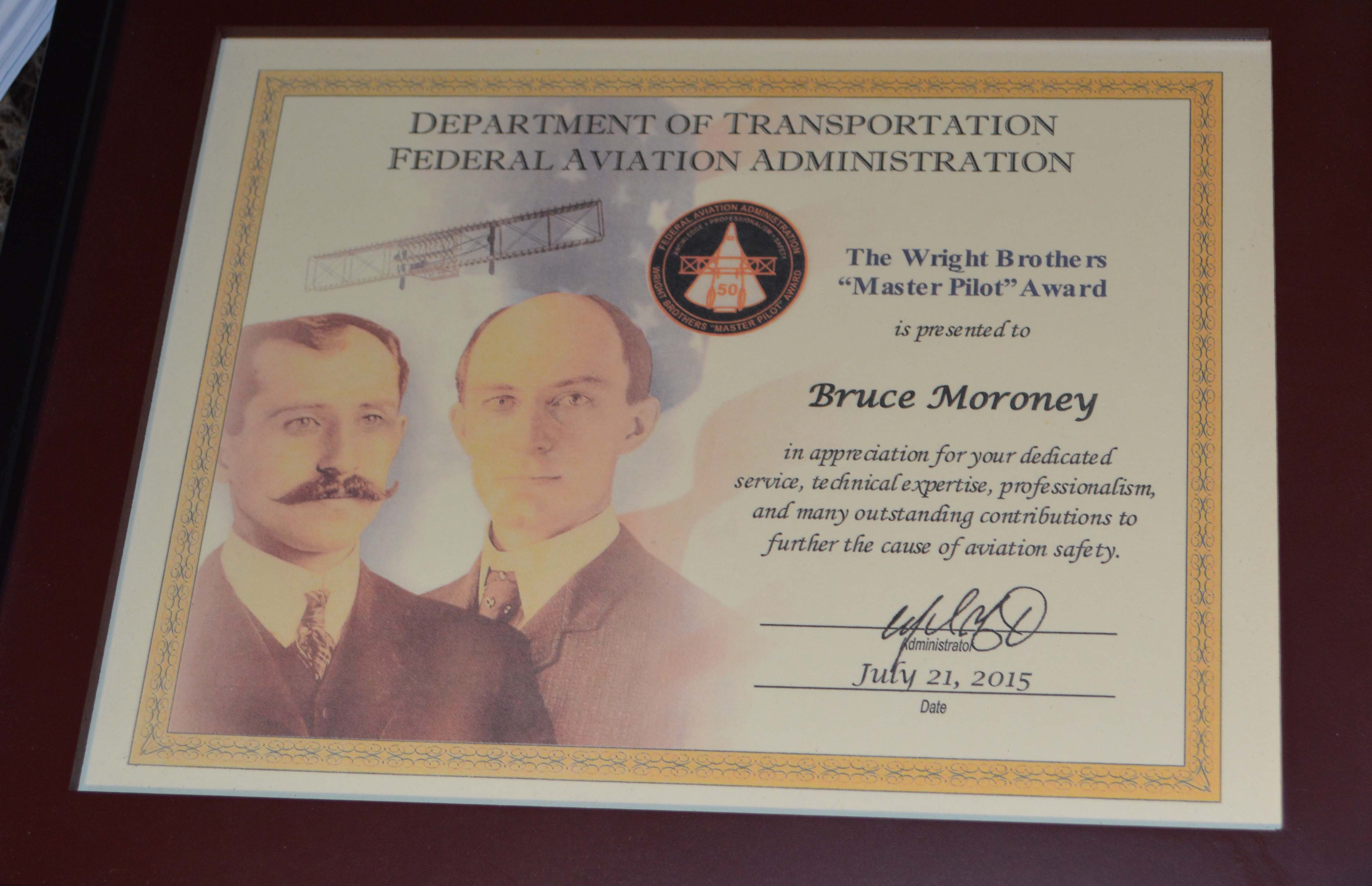 A milestone in my career as a pilot this July. November 2014 marked 50 years since my 1st solo in Dad's C-140 at Palo Alto Airport on my 16th birthday.  July 21 at an FAA Awards ceremony I received the Wright Brothers Master Pilot Award, 50 years as a licensed pilot. Mom, Josh and Grace spent a week in July with us and were present. Great to have Mom there as she was 50 years ago.