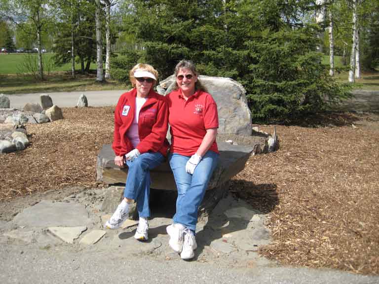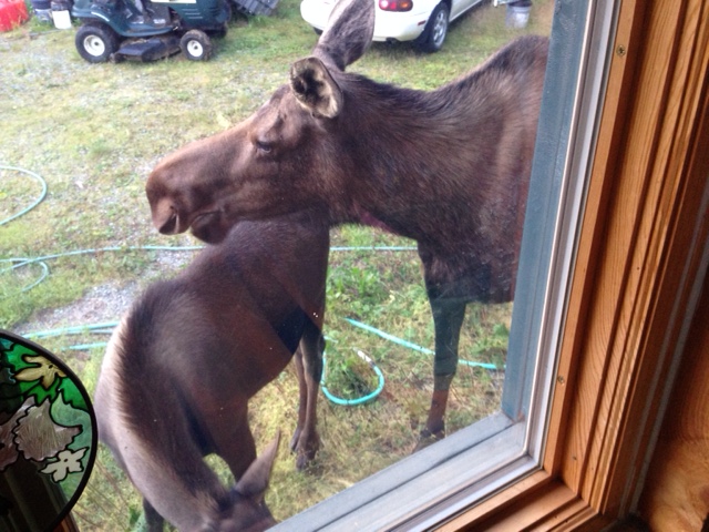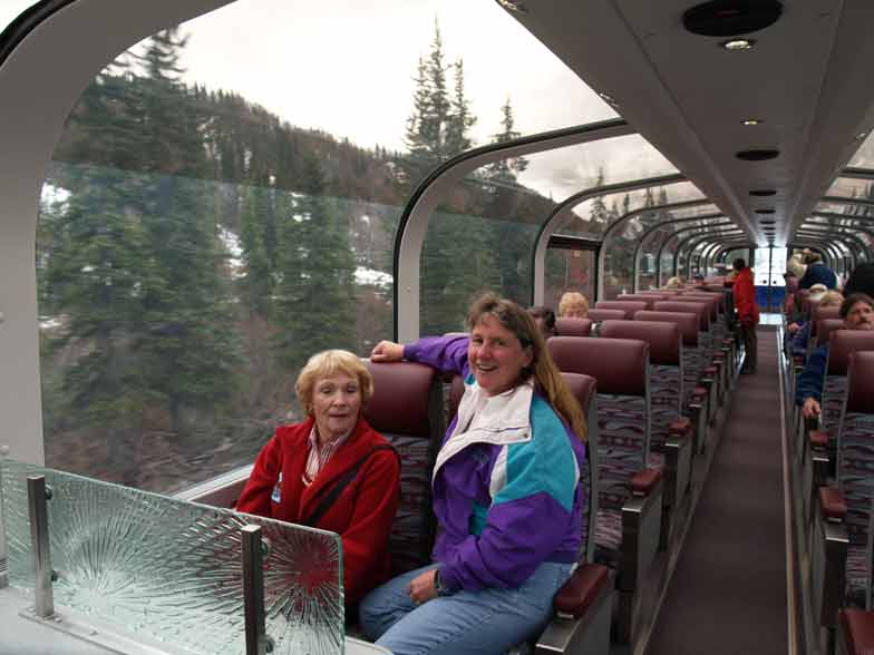 Mom & Diana at Moose Run Sneaking up to the doom car Alaska Railroad Moose Calf