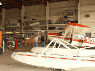 Ready the hoist                                 Grant Aviation hanger                              Amber Lake