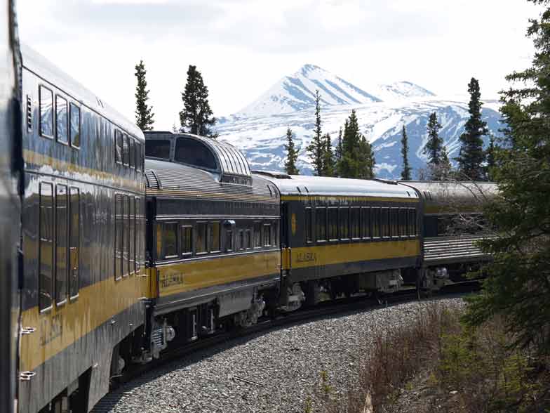 A spring trip on the Alaska Railroad: Diana and I have been in Alaska for over 30 years and we were embarrassed to say we had never taken a trip on the Alaska Railroad! Love those Airline Miles. Mom escaped the early 100'f heat in Eldorado Hills on an Alaska Airlines First Class seat North. Diana had planned a trip for the 3 of us on The Alaska Railroad from Anchorage to Denali Park for over night stay and return.  Mom arrived while I was on a short trip so to fill Mom's time Diana had a round of golf planned. I told Diana I didn't think that was such a good idea, Mom's almost 80, she needs to be around for he 80th birthday bass in August! Friday morning they awake to rain. Diana insist the weather will be fine and there off to Moose Run for a round. A bucket of balls at the range then off to the first hole. The rains stopped and the sun came out and according to Mom she did pretty good for an old gal, completing 9 holes. Spring in Alaska, it's lush and green with the leaves just out, still a bit cool but just after a rain Diana and Mom had the golf course to them selves and had a blast.