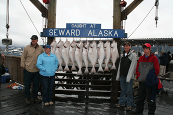Malia's Coho catch            Fishing off the Floats                     Bob and our Halibut haul                              Cory Eberhardt and a monster 64"