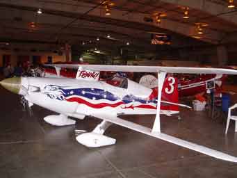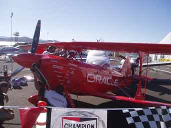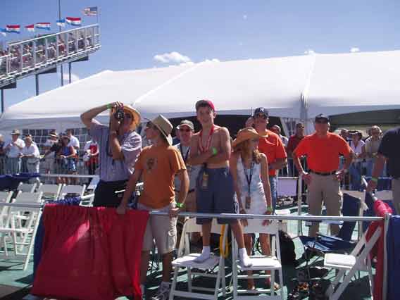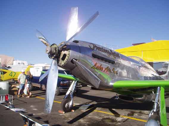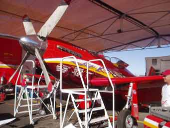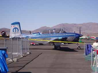 1963 Dad took me to my first Air Race at Reno. These were the early days of Reno and I remember vividly the performances of Bob Hoover, Art Scholl and the spectacular unlimited races. Engines throbbing with a resonance you could feel in your teeth. I was hooked and have gone back regularly since. I first took Diana to Reno in 1992 and have taken Josh and John, there all hooked.2004 Diana and I purchased box seats, (10 seats) at the home pylon with the Kramer family. Alison and Terry Yomans also joined us.Air Racing has a long history in America. Since the barnstorming days, pilots have been challenging their aircraft and each other in the sky. There were race venues from coast-to-coast after WWII which saw mostly modified surplus fighter aircraft screaming around a low level course dazzling spectators. Accidents, area growth and people who just don't like airplane noise have since eliminated all but one race. The National Championship Air Races at Stead Airport, Reno Nevada. Every September for 5 days, competitors, performers and fans flock to the only Air Race venue in the world. At 5000 feet elevation in the thin air of the High Sierra Desert it's non-stop action. Aircraft racing is the main attraction in addition to aerial displays, aerobatics, skydiving and the latest military aircraft demonstrations. Racing involves 6 classes.