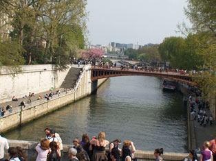 We headed towards Notre Dame, but on our way stopped and went through the Luxembourg Gardens. Its still early and the flowers are just blooming, the trees have yet to show their full foliage. Its a quiet place away from the noise of the traffic and you can tell the Parisians love the solitude of time spent there. On our way to the Louvre we grabbed a sandwich jambon fomage baguette from a local street side cafe.